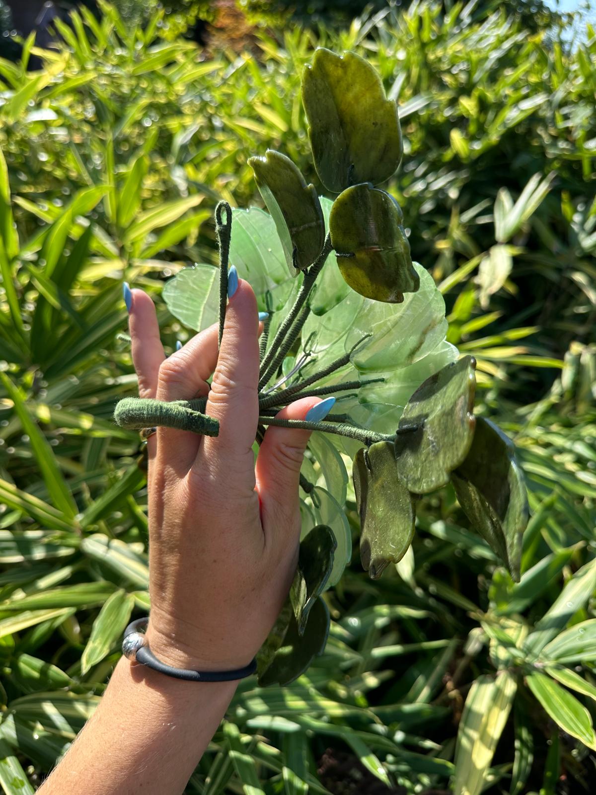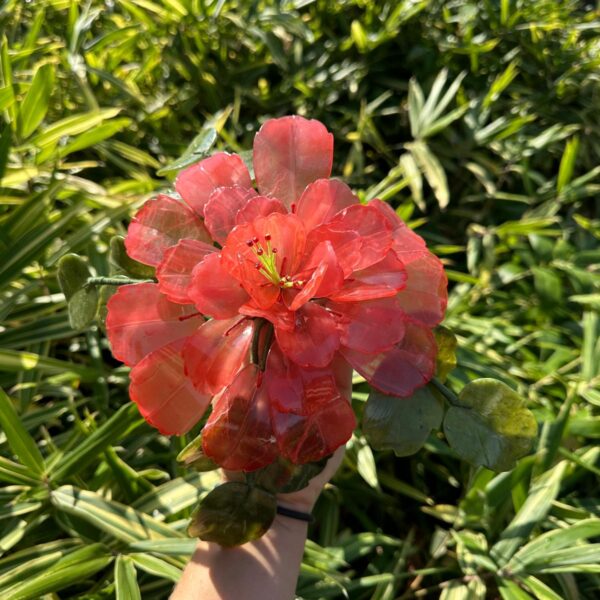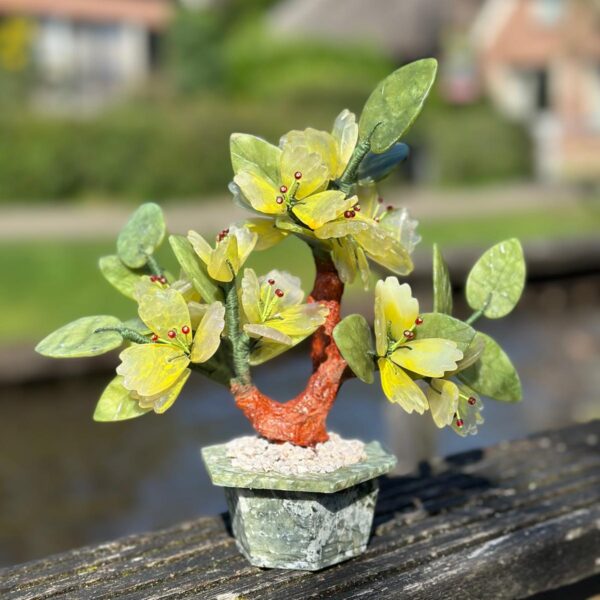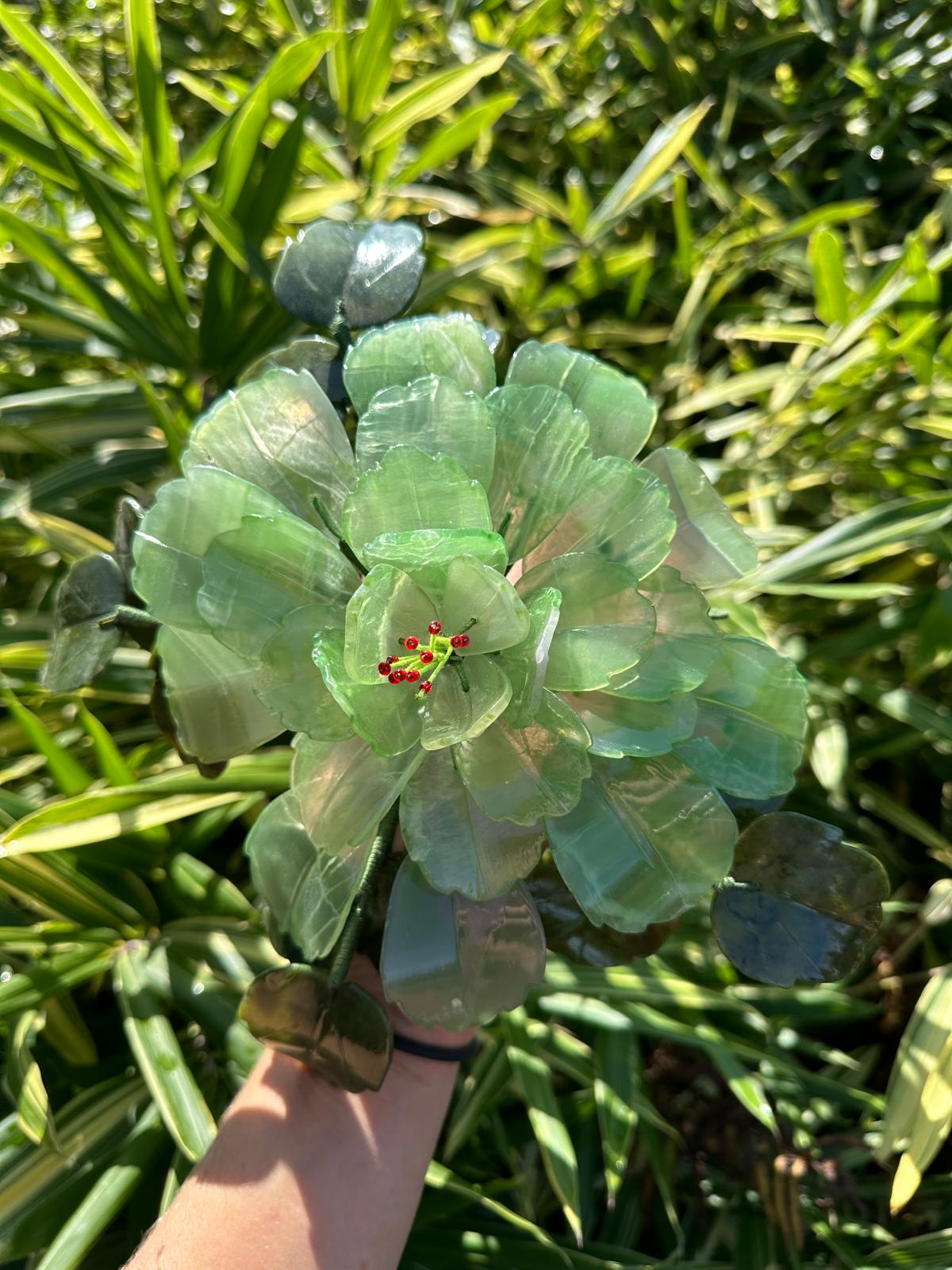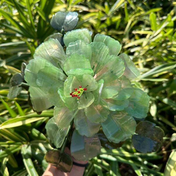 Aragoniet bloem gebeitst met nefried blaadjes.