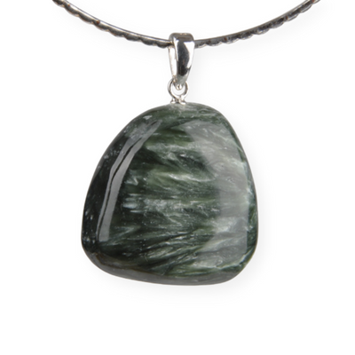 Serafiniet (Chloriet) is afgeleid van het Griekse clino (scheef) en chloros (groen). De zilverachtige glans van Serafiniet wordt veroorzaakt voor Mica incluitsels.