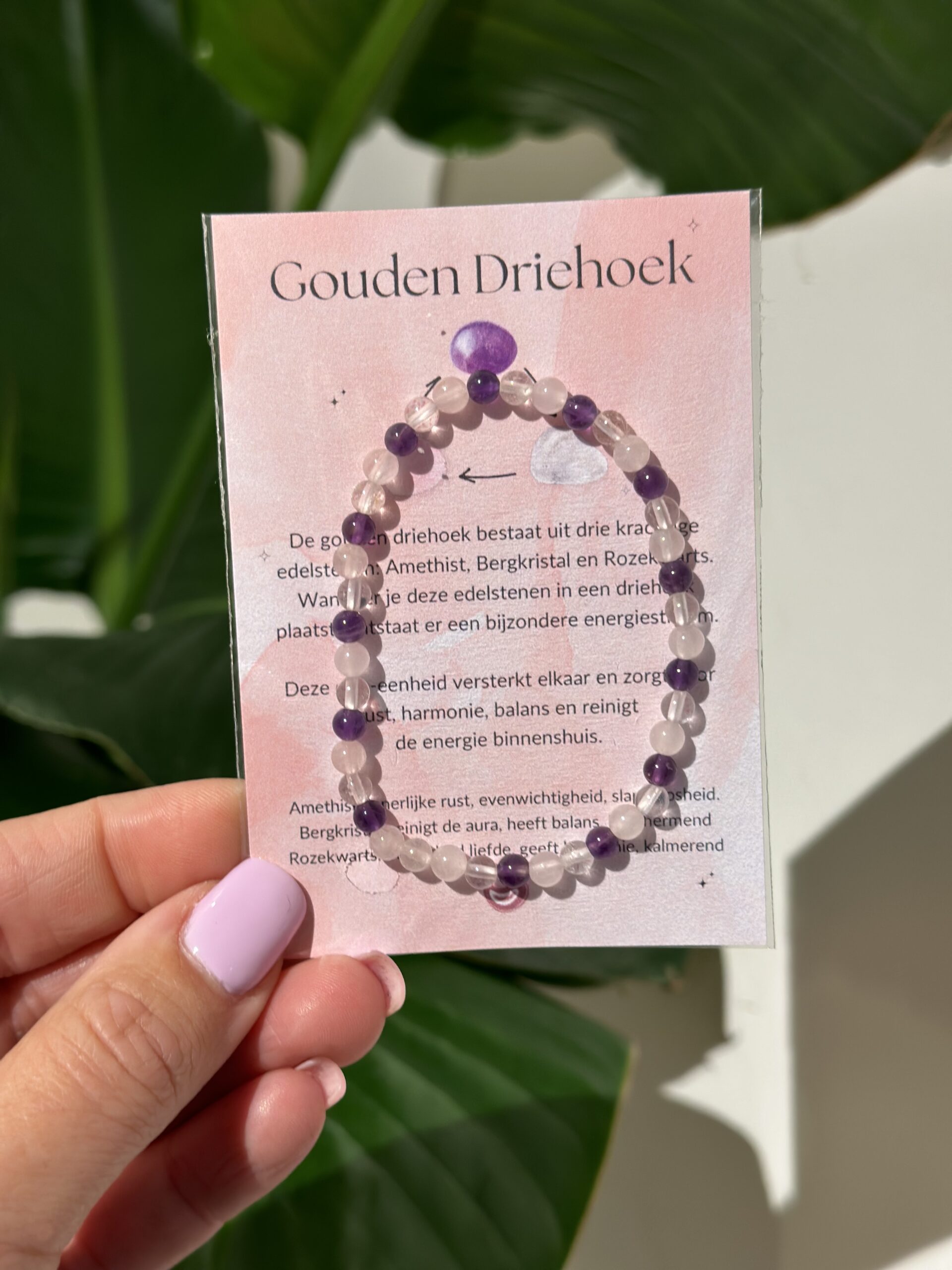 Gouden driehoek (Amethist, Bergkristal, Rozekwarts) – kogelarmband 4mm