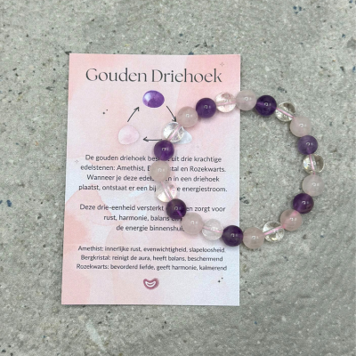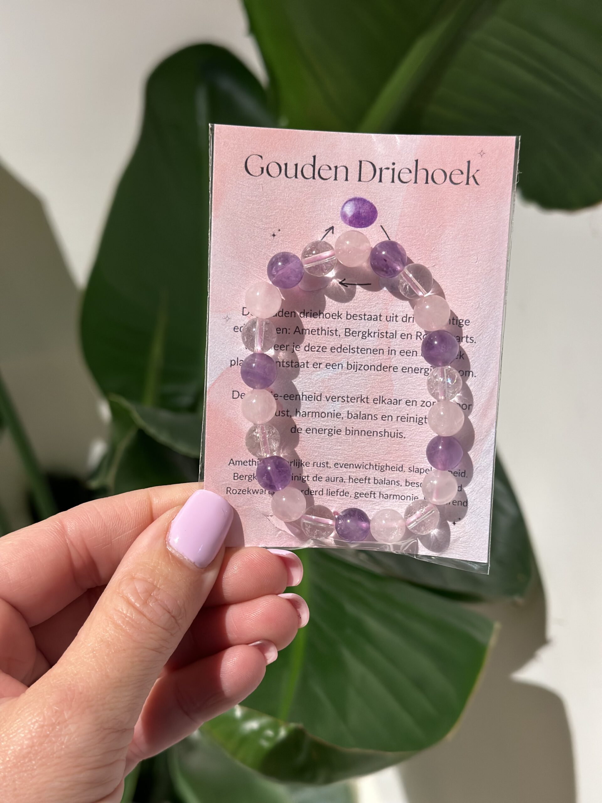 Gouden driehoek (Amethist, Bergkristal, Rozekwarts) – kogelarmband 8mm