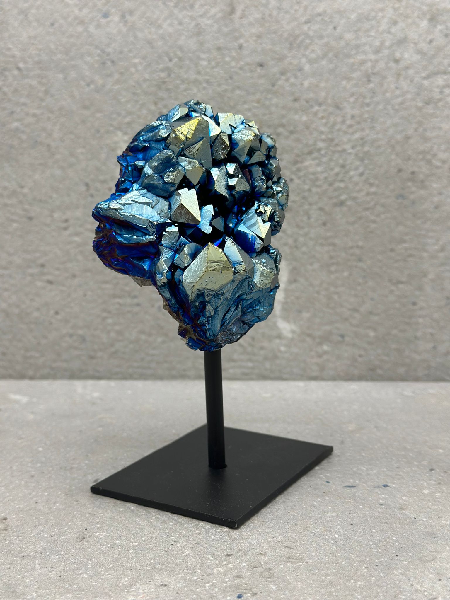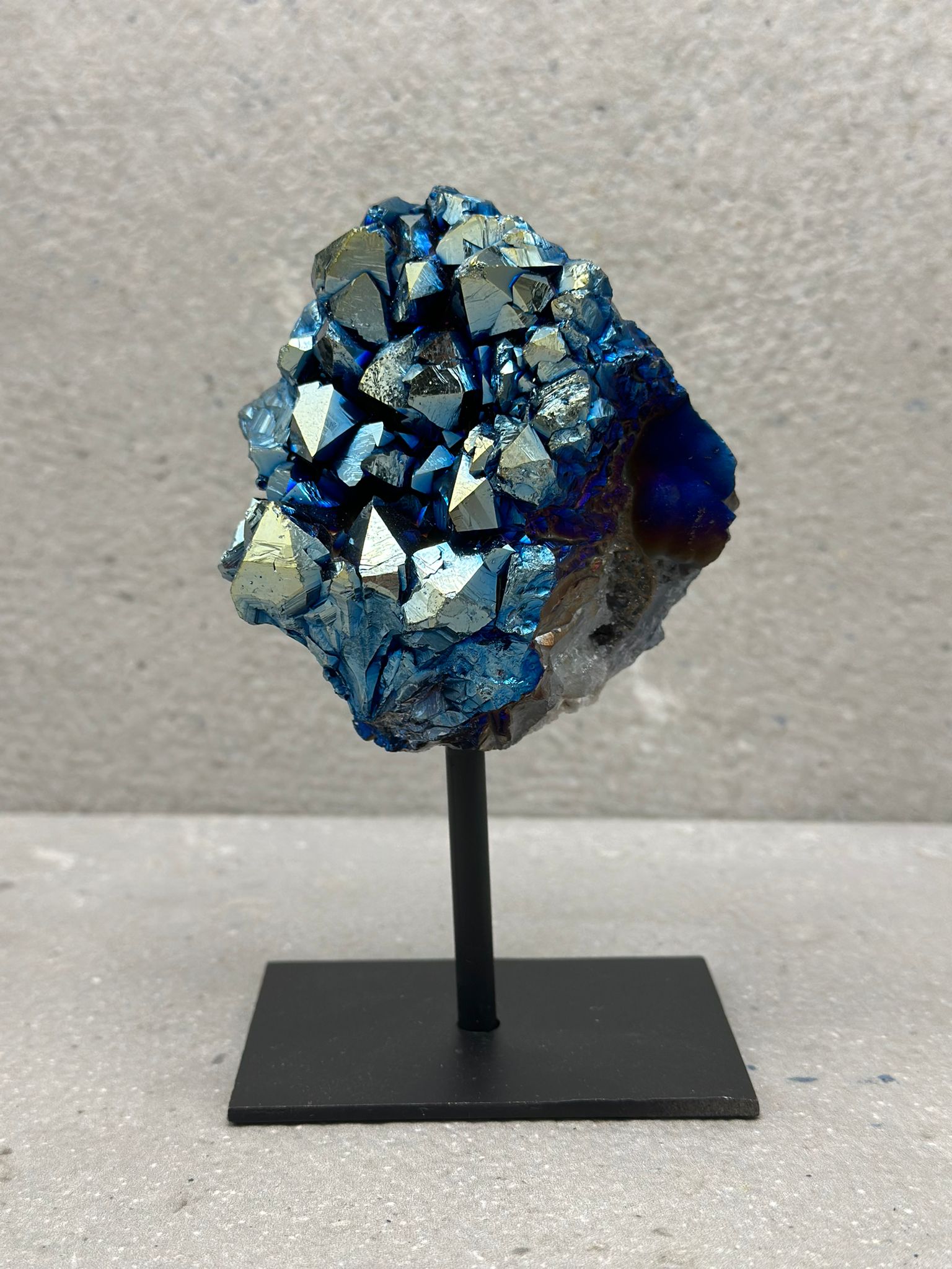 Titanium coated Amethist op standaard.
