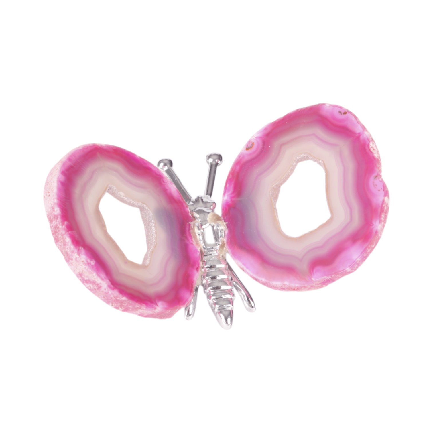 Agaat vlinder gebeitst met zilverkleurig lijfje.